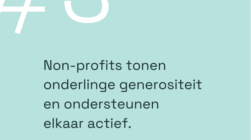 Deze principes klinken abstract, maar ze leven al in onze sector. Consortium 12-12 is een mooi voorbeeld van principe 3 in actie: vijf humanitaire organisaties coördineren samen hun fondsenwerving bij rampen en halen zo aanzienlijk meer op dan ze elk apart zouden kunnen. Bij de Oekraïne-oproep in 2022 zamelden ze samen meer dan 30 miljoen euro in, waarbij 98,8% rechtstreeks naar de hulpverlening ging. Niet ieder voor zich, maar samen sterker.