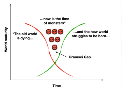 “The crisis consists precisely in the fact that the old is dying and the new cannot be born; in this interregnum a great variety of morbid symptoms appear.”